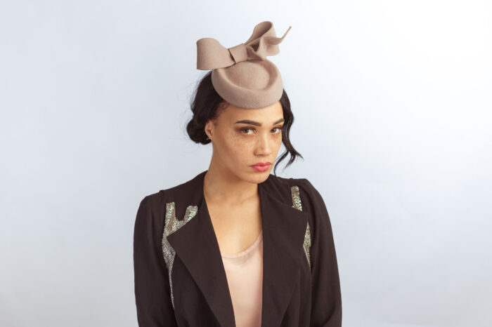 Sojourner: Nude Felt Pillbox Hat with Sculptural Bow