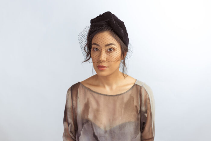 Shadow Play: Black Velvet Turban Headband with Veil